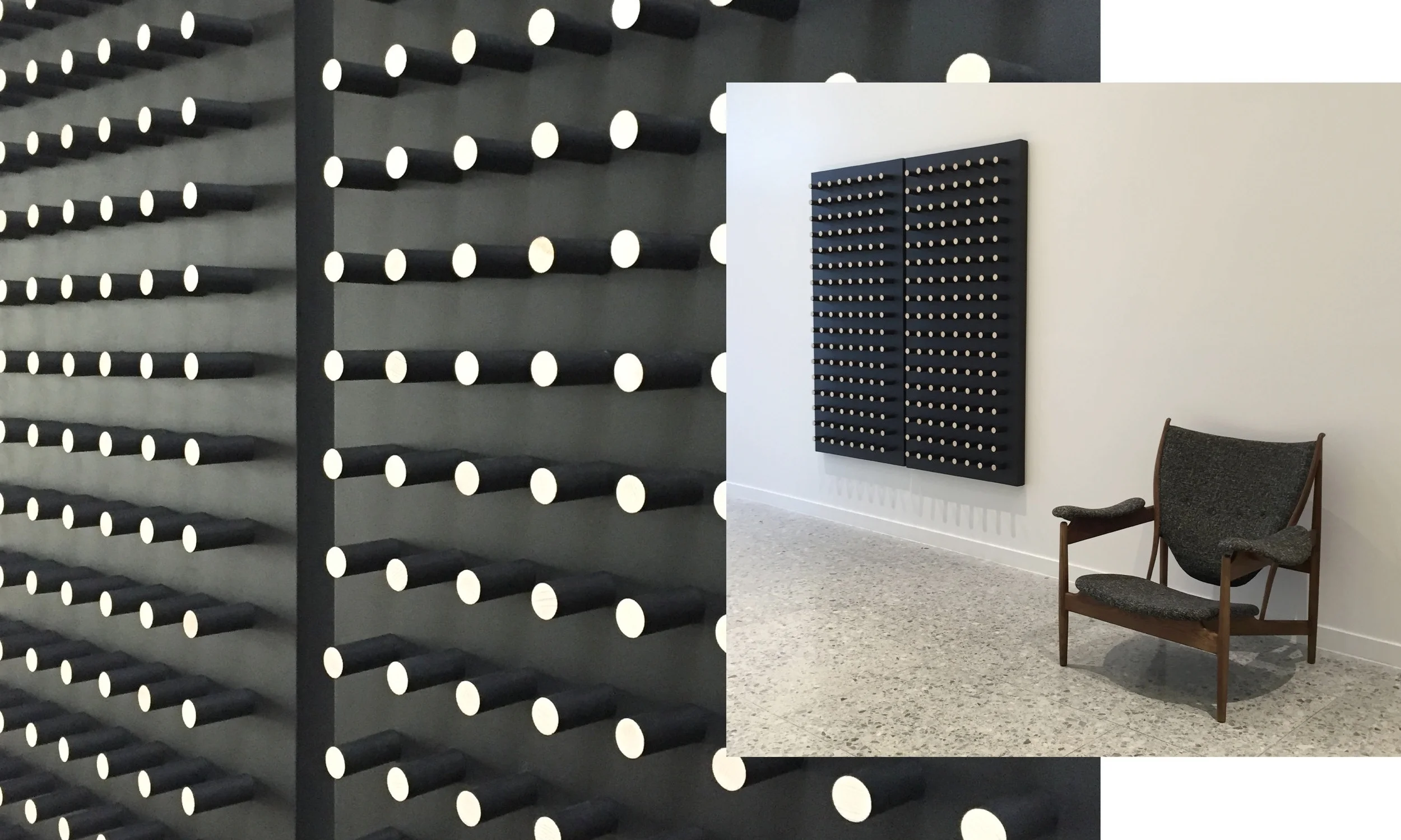 20 Peg Works in black and grey are featured in public areas.